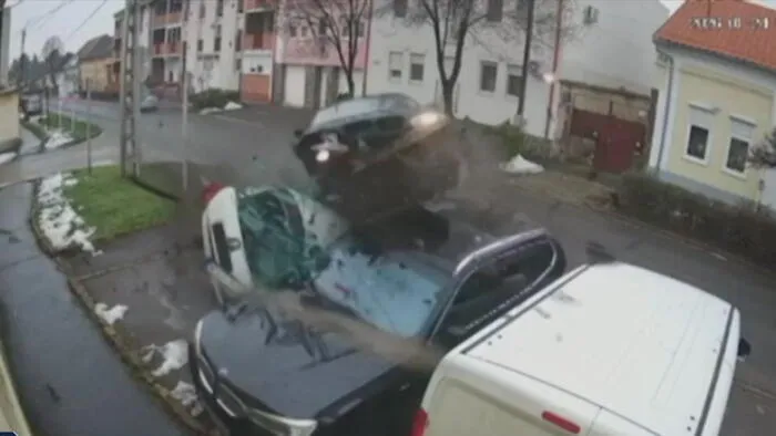 Megdöbbentő videó készült arról, ahogy rommá tört három parkoló autót egy száguldozó sofőr Gyöngyösön. Nagyon gyorsan mehetett, és amikor kikanyarodott az útra egy másik kocsi, megijedt, hatalmasat fékezett, amitől az autó megcsúszott és szó szerint felrepült, letarolta a parkoló kocsikat, egyet fel is borított. Egy szemtanú azt mondta, a balesetet okozó sofőrt elvitte a mentő.